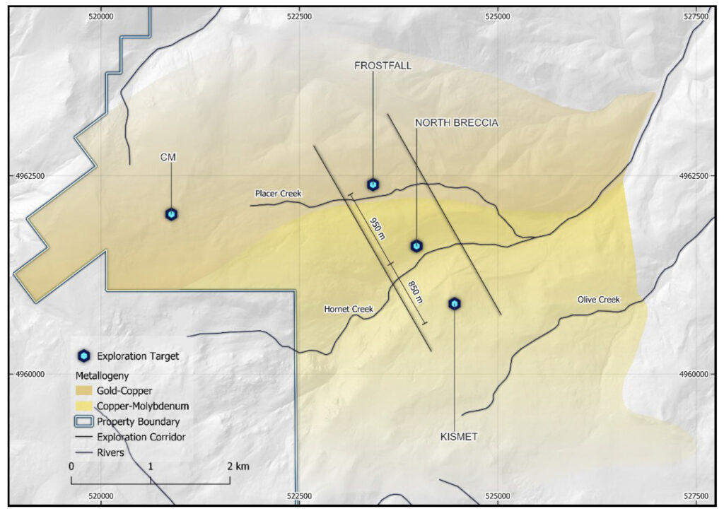 - Completion of a project wide model with defined Porphyry Copper drill targets for the 2026 exploration season – this includes testing where we left off with KSMT25006, which is interpreted to have pushed through the pyrite shell of a porphyry located between the Kismet and North Breccia Targets.